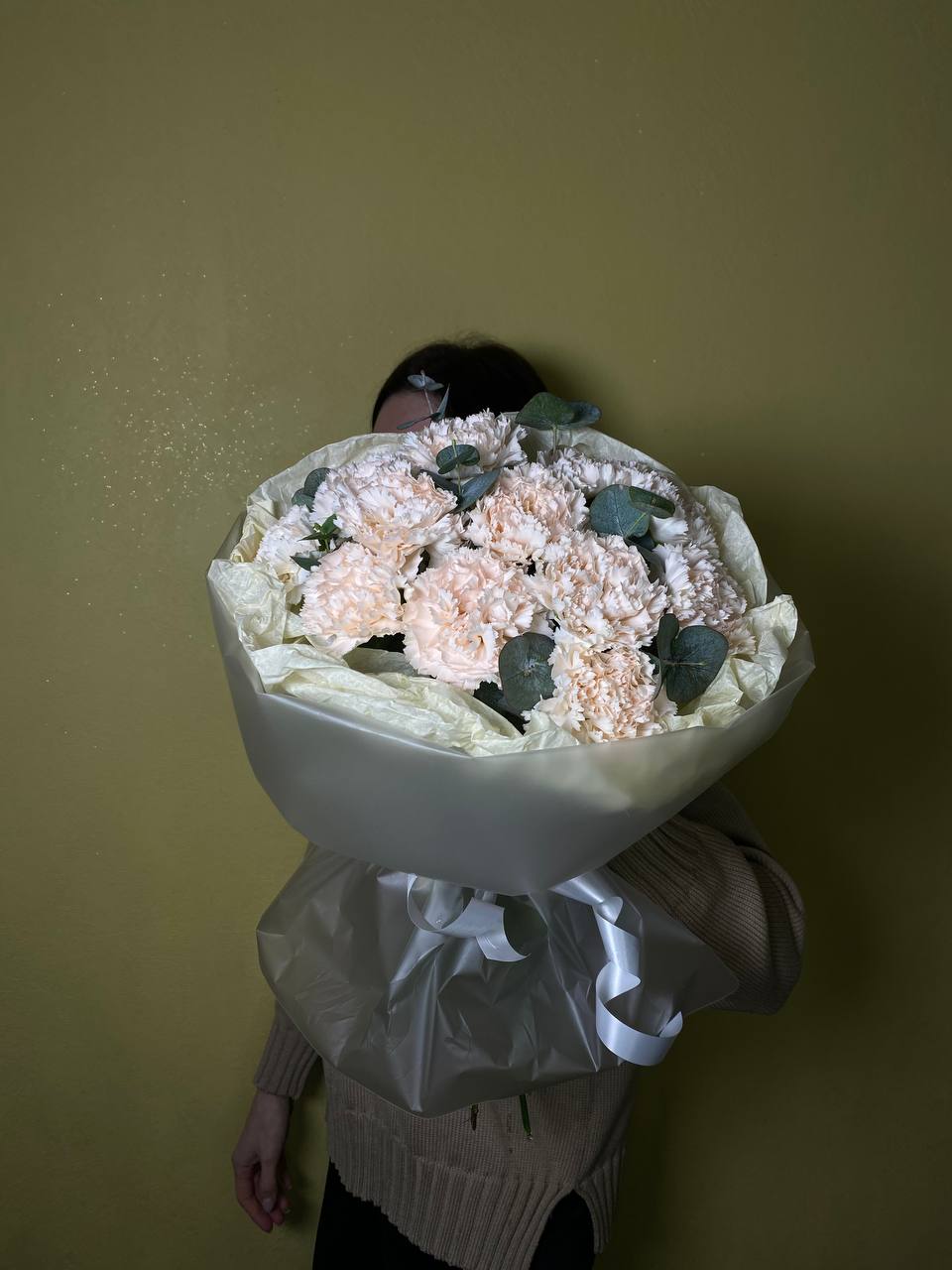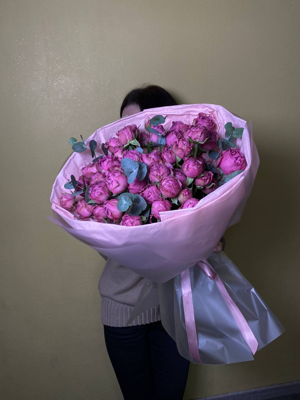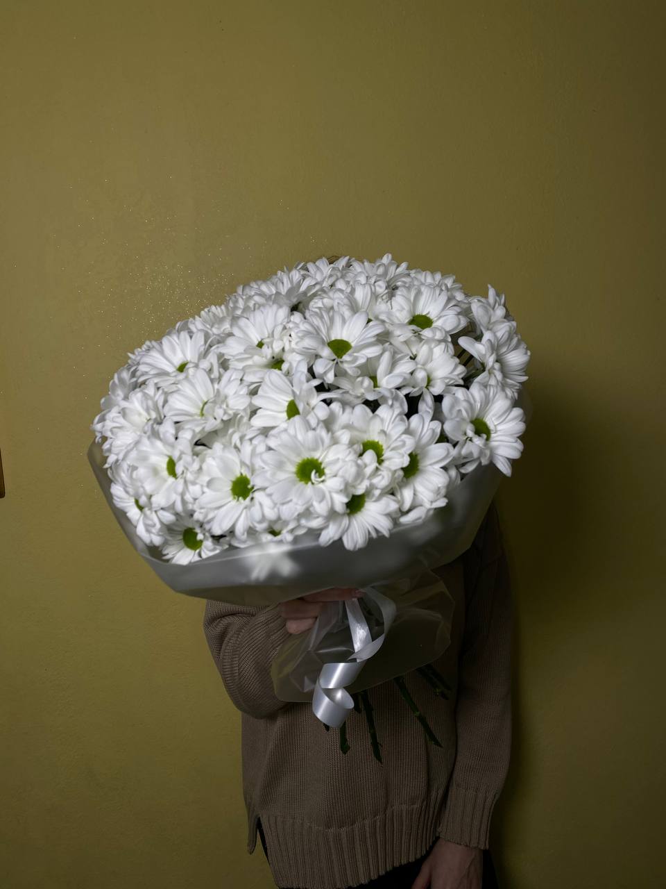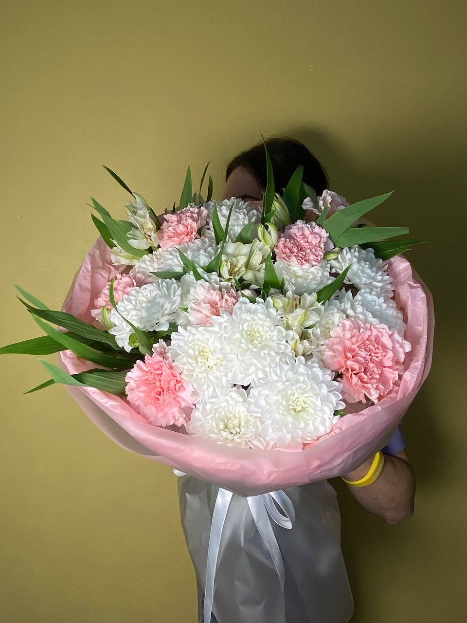 Хризантема Бигуди, кустовая хризантема, эвкалипт, лизиантус, хамелациум.